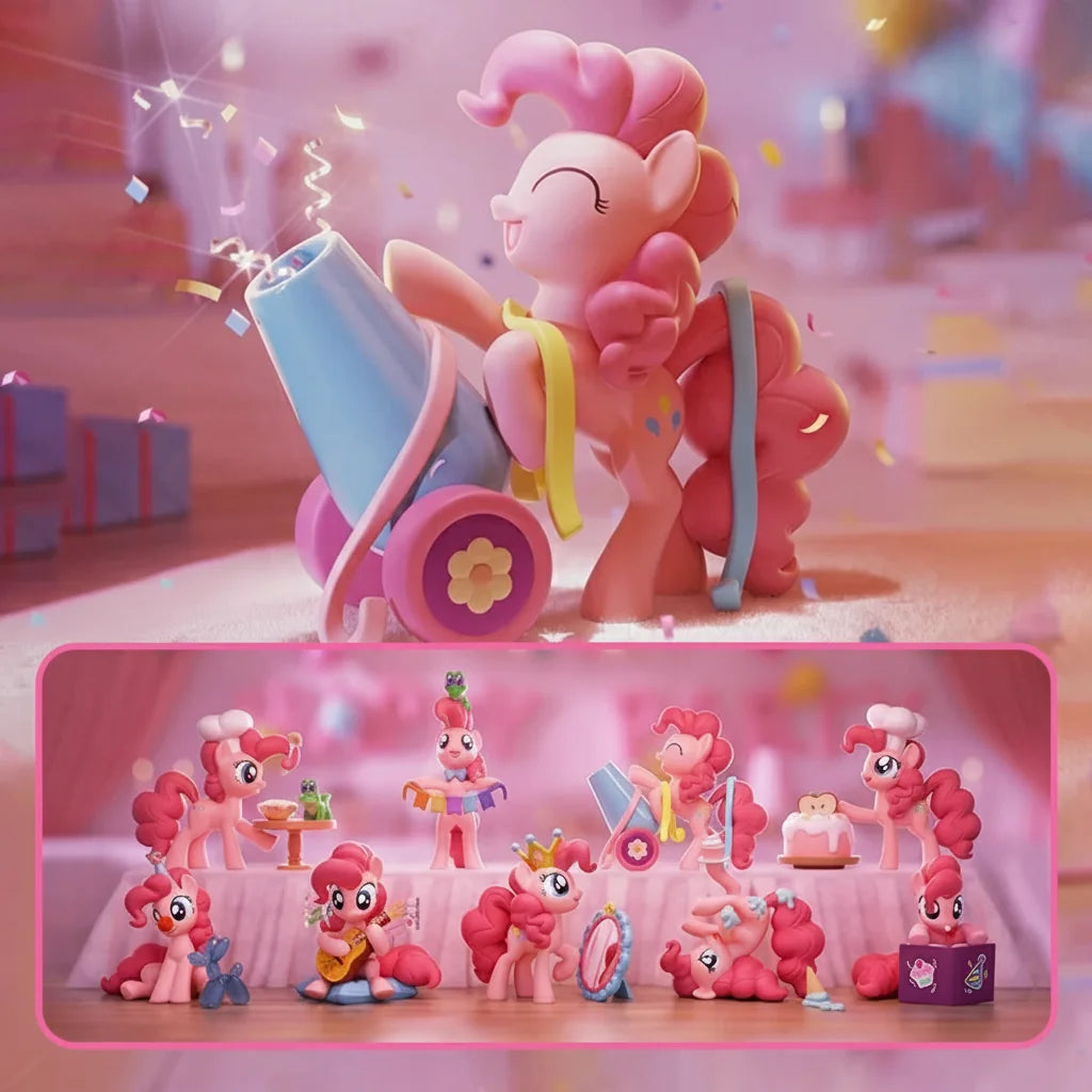 C'est la série Fête! Chaque poney arrive avec des accessoires et des poses uniques, prêts à célébrer. C'est une invitation à créer des scènes de fête éblouissantes et à partager des moments de pure amitié étincelante.