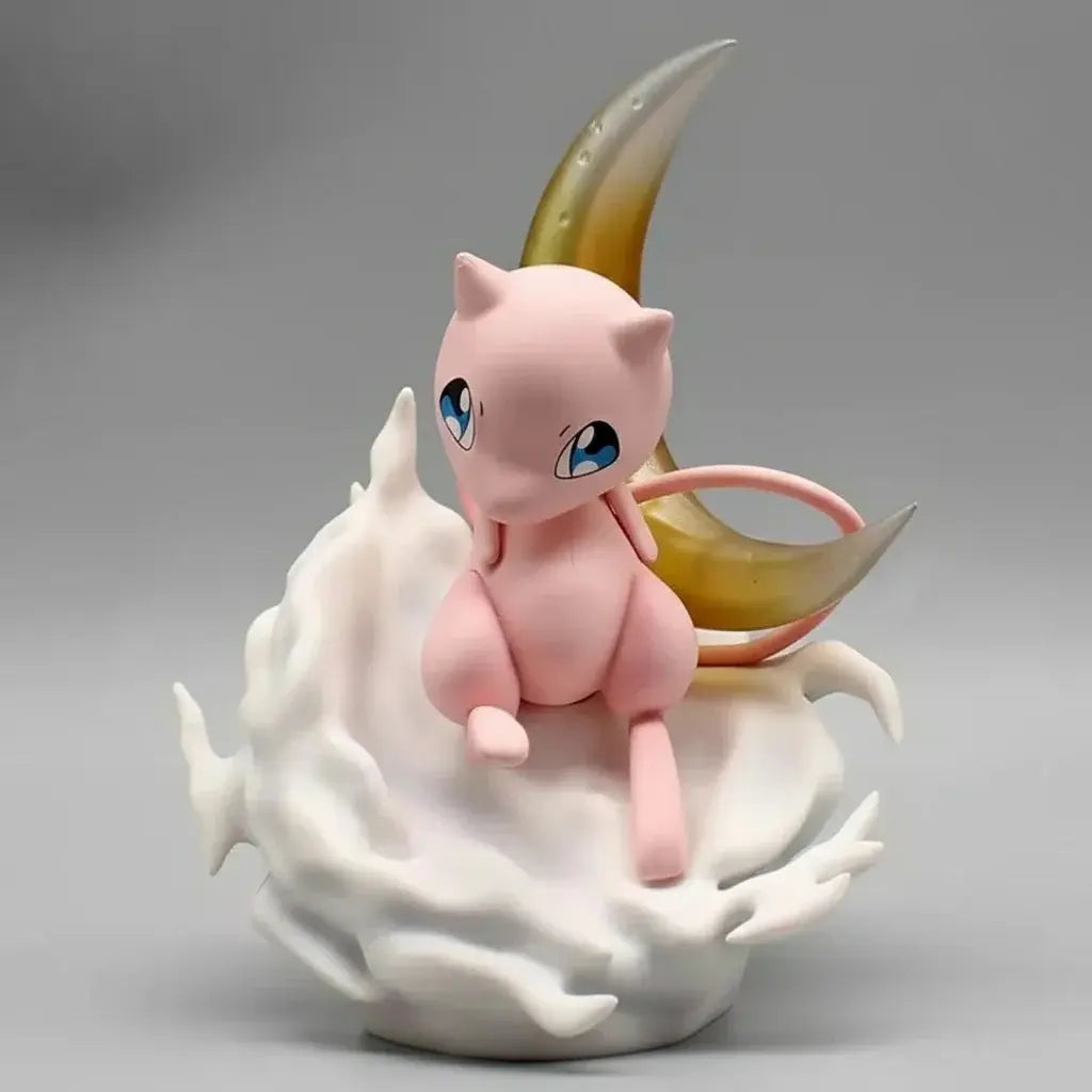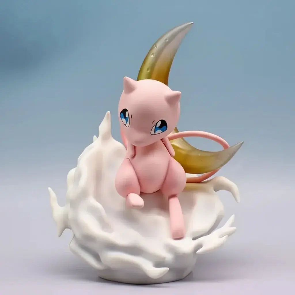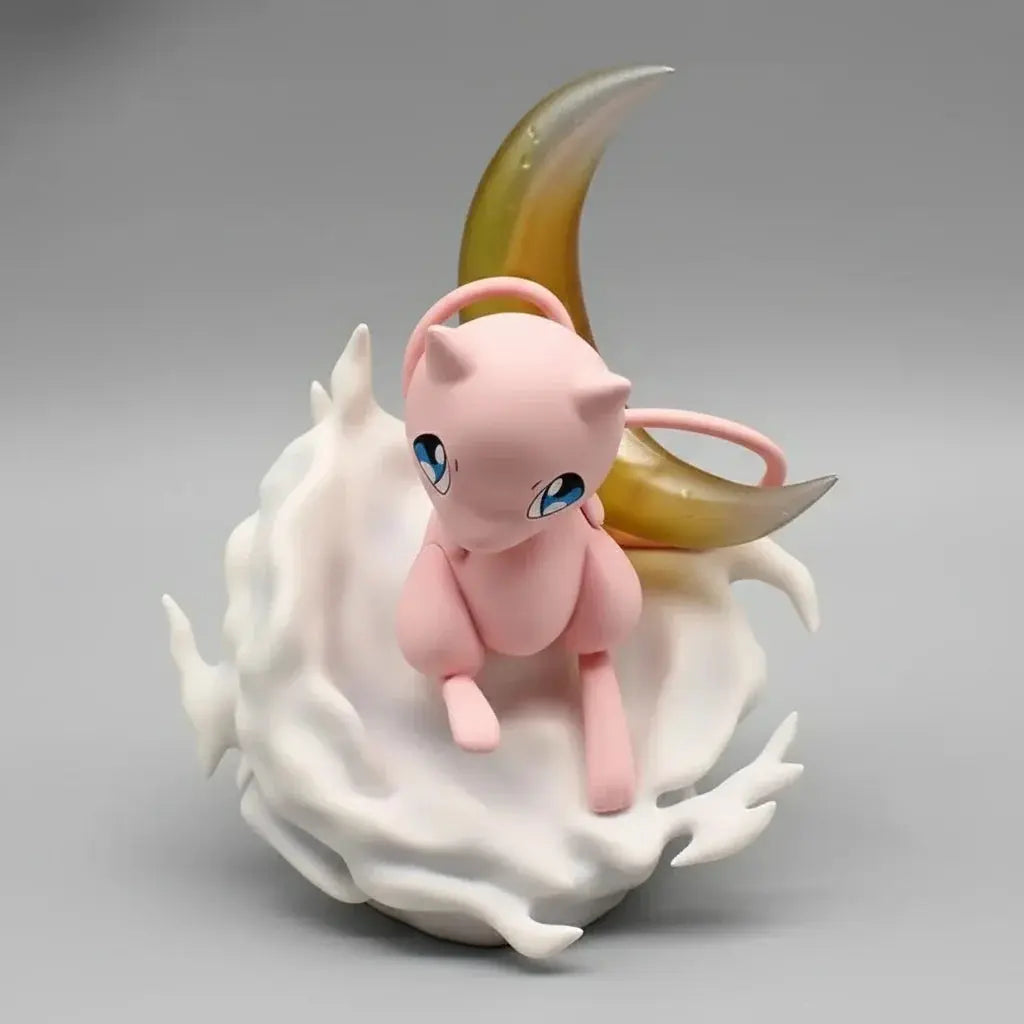La petite Mew repose avec grâce sur son nuage douillet, bercée par la lueur douce d'un croissant de lune. Cette scène est une invitation à la rêverie, transformant chaque regard en un moment d'évasion et de pur enchantement.
