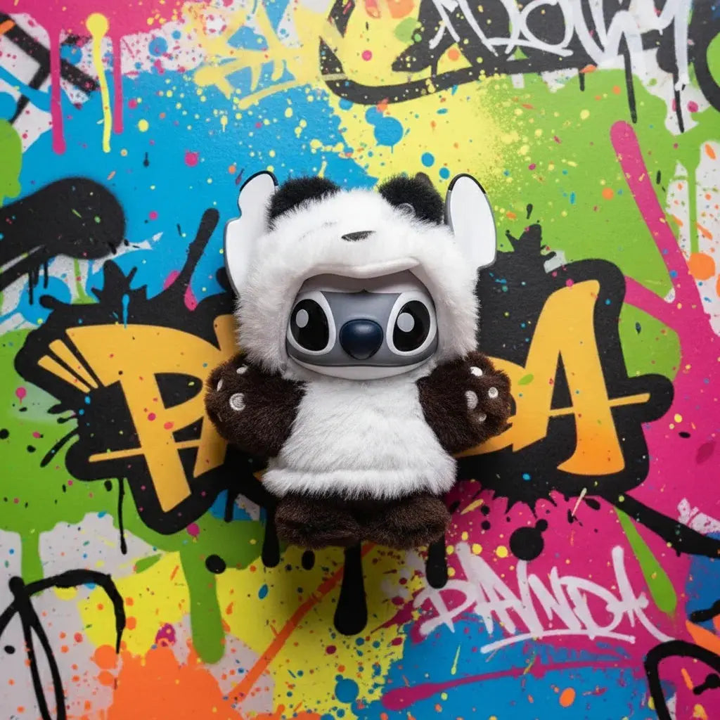 L'adorable Stitch se transforme en panda avec un style graffiti audacieux. Un must-have pour les fans!