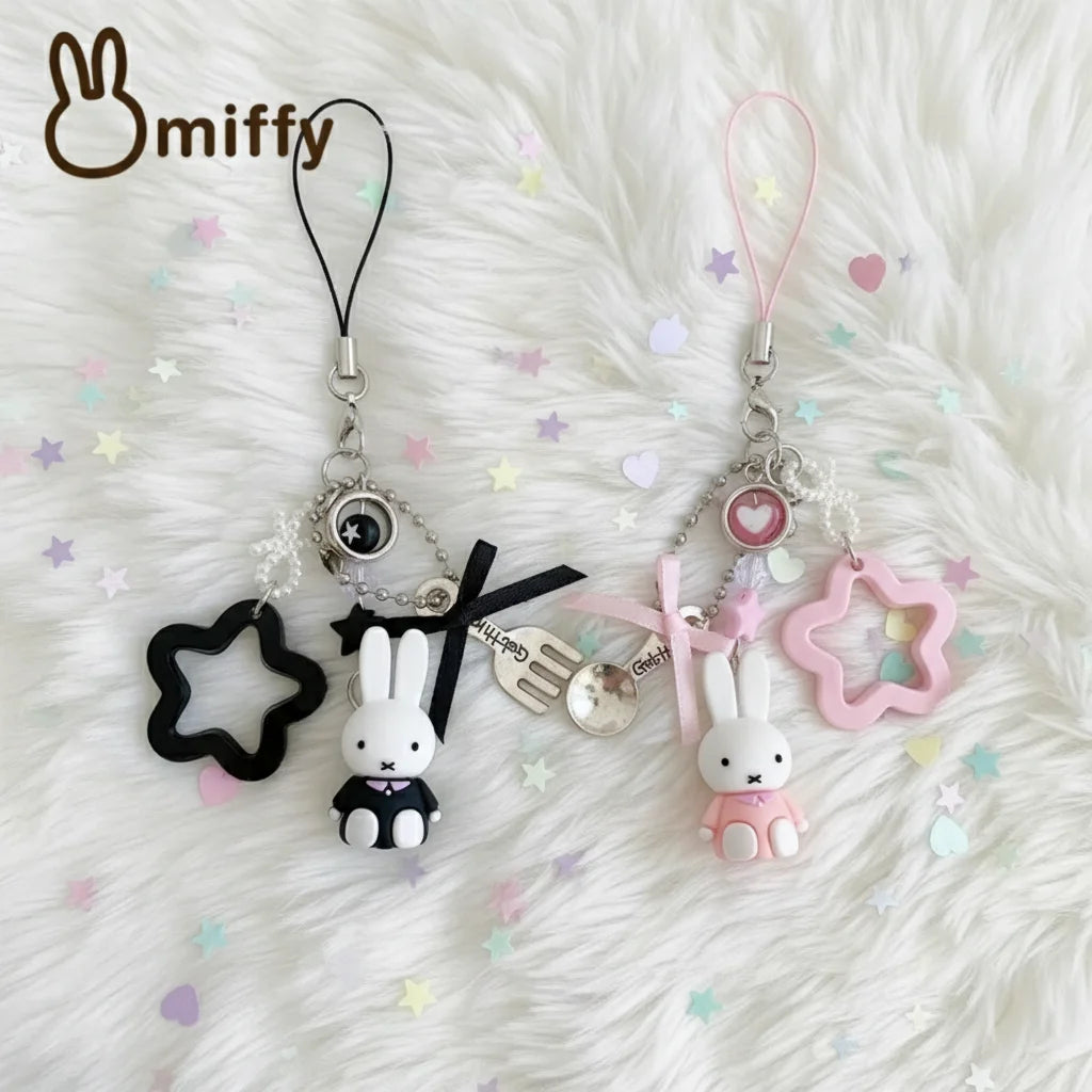 Fixe facilement ta Miffy préférée à ton sac à main, tes clés, ou même ta trousse de maquillage. Les petits charmes étoilés et les nœuds ajoutent une dose de mignonnerie instantanée. Montre au monde ton style unique sans effort et avec une touche de fun.