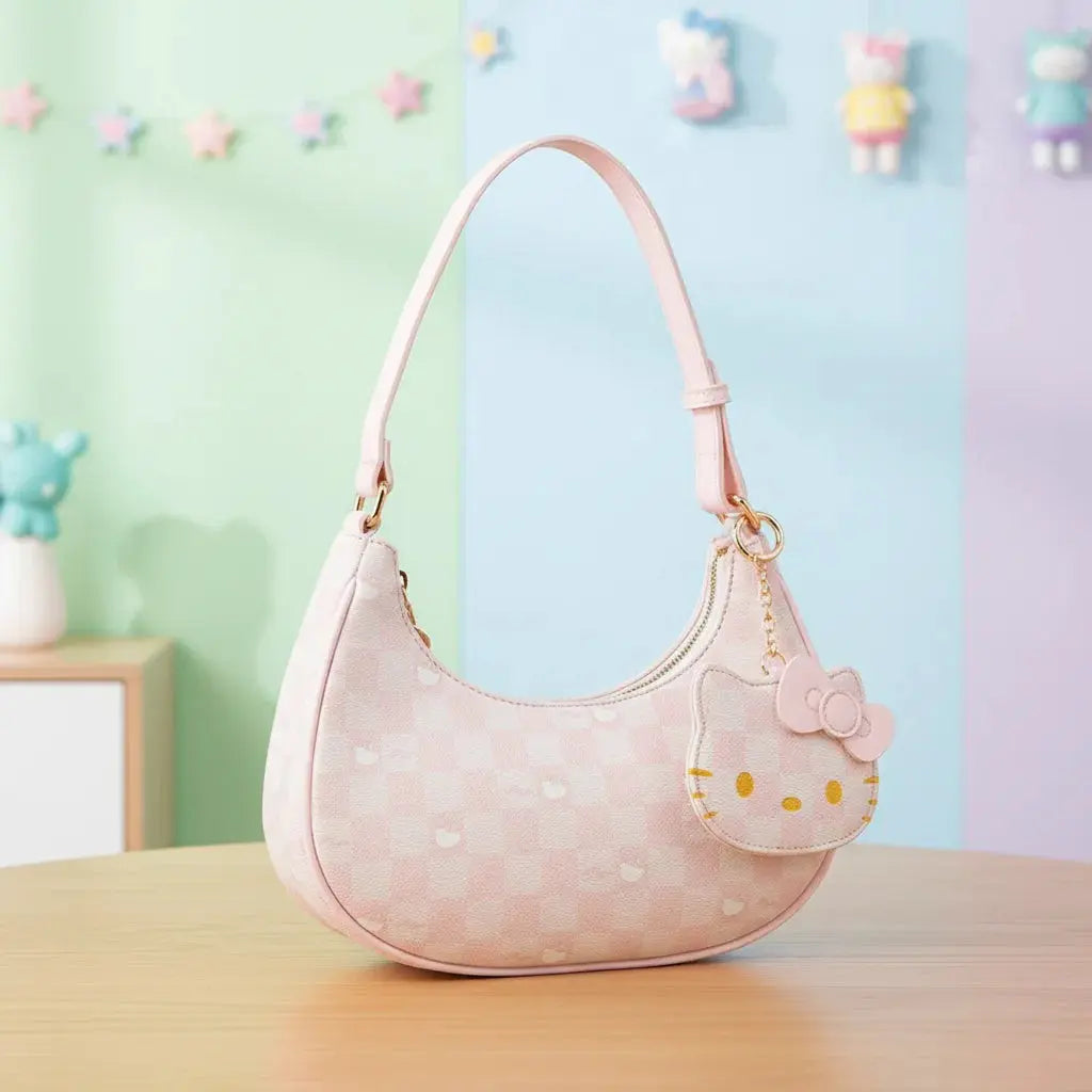 C'est son mélange magique de nostalgie Y2K et de modernité ! La forme croissant, le motif discret, le charm Hello Kitty... chaque détail est une invitation à la joie et à un style unique. C'est un véritable rêve devenu réalité pour les fans !