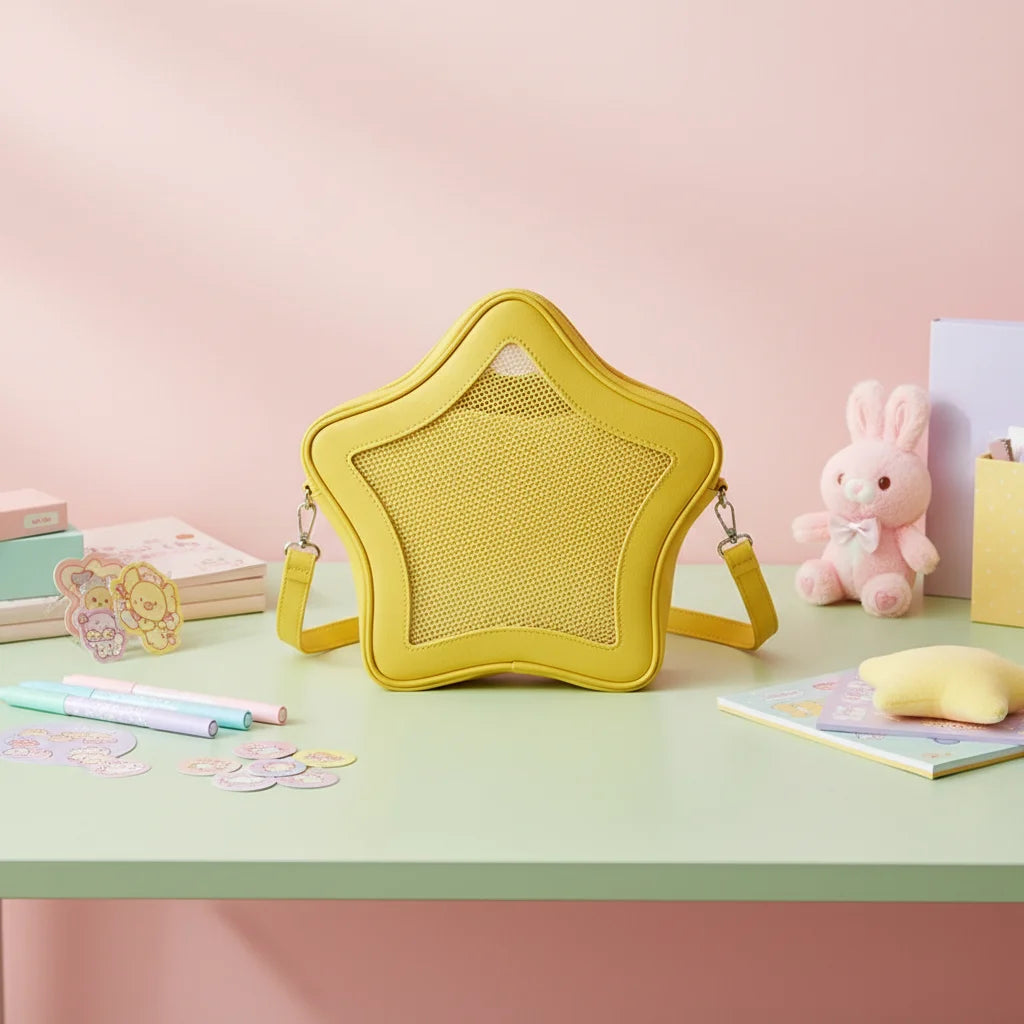 Plus qu'un sac, c'est votre propre vitrine Kawaii. Chaque Étoile est une invitation à curater et à adorer vos épinglettes et vos petits trésors, transformant chaque sortie en un défilé de votre âme unique.